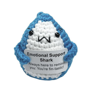 Bring a splash of encouragement and whimsy to any desk or shelf with this adorable Positive Energy Shark Doll. Handcrafted with meticulous detail, this charming shark features soothing blue and white yarn, expressive black eyes, and a tiny black smile. Clutched between its fins is a heartfelt sign proclaiming, “Emotional Support Shark. Always here to remind you: You’re fin-tastic!”—a playful yet sincere nod to self-confidence and positivity.